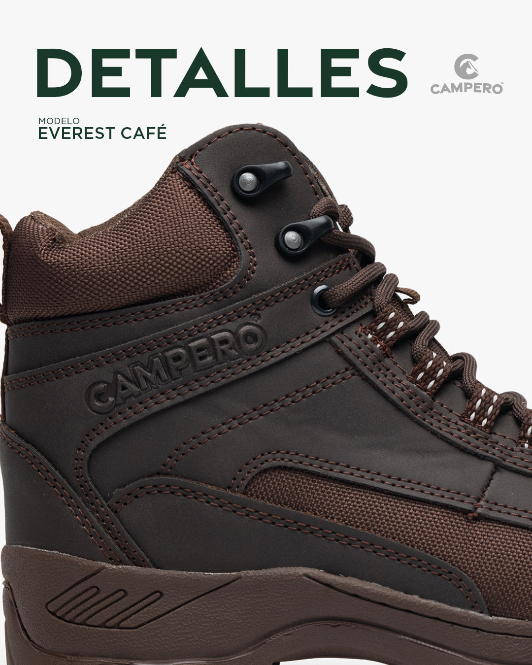 Bota outdoor sintética color cafe con forro de malla, plantilla con confort para una mayor comodidad, detalle de acolchonamiento en el cuello para un mejor confort, ojillos y cintilla resistente en chalecos para una mejor vista, suela de hule muy resistente, diseñadas para un uso rudo, cocidas con precisión stitcher .